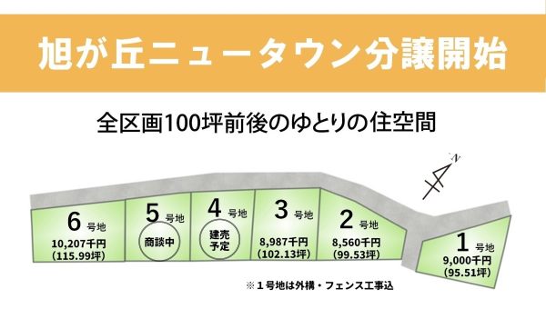 旭が丘ニュータウン分譲地を販売開始しました!建築条件なし!全区画95坪以...